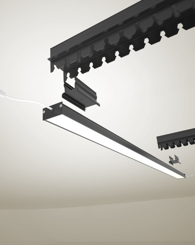 The lighting modules fit directly into the Mix system without additional framing or tools, ensuring a precise alignment and a fast, clean installation process.