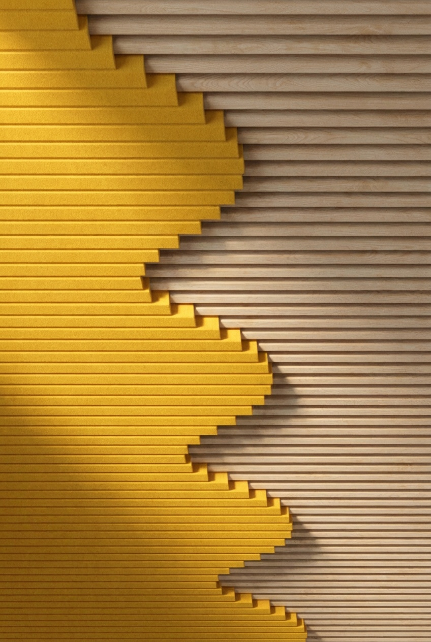 Quality acoustics are achieved through the right balance of absorption, reflection, and diffusion. With the Linear Mix system, you can combine different Gustafs products — such as ribs, baffles, and Feltfon elements — to reach the desired acoustic result.