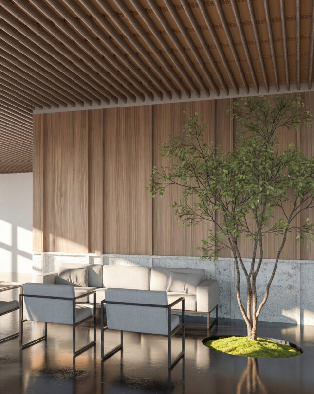 Rib-E builds on the same trusted performance as Rib-R, but with a fully rounded profile that brings a softer, more fluid expression to any interior. Crafted with real wood veneer and a dimensionally stable fibre-gypsum core, it delivers long-term reliability without warping or movement, even in demanding environments.