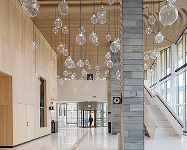 Gustafs was given the task of manufacturing and delivering the suspended ceiling that runs through the entire office. The suspended ceiling consists of our Linear Modules, solid wooden slats made of solid oak.