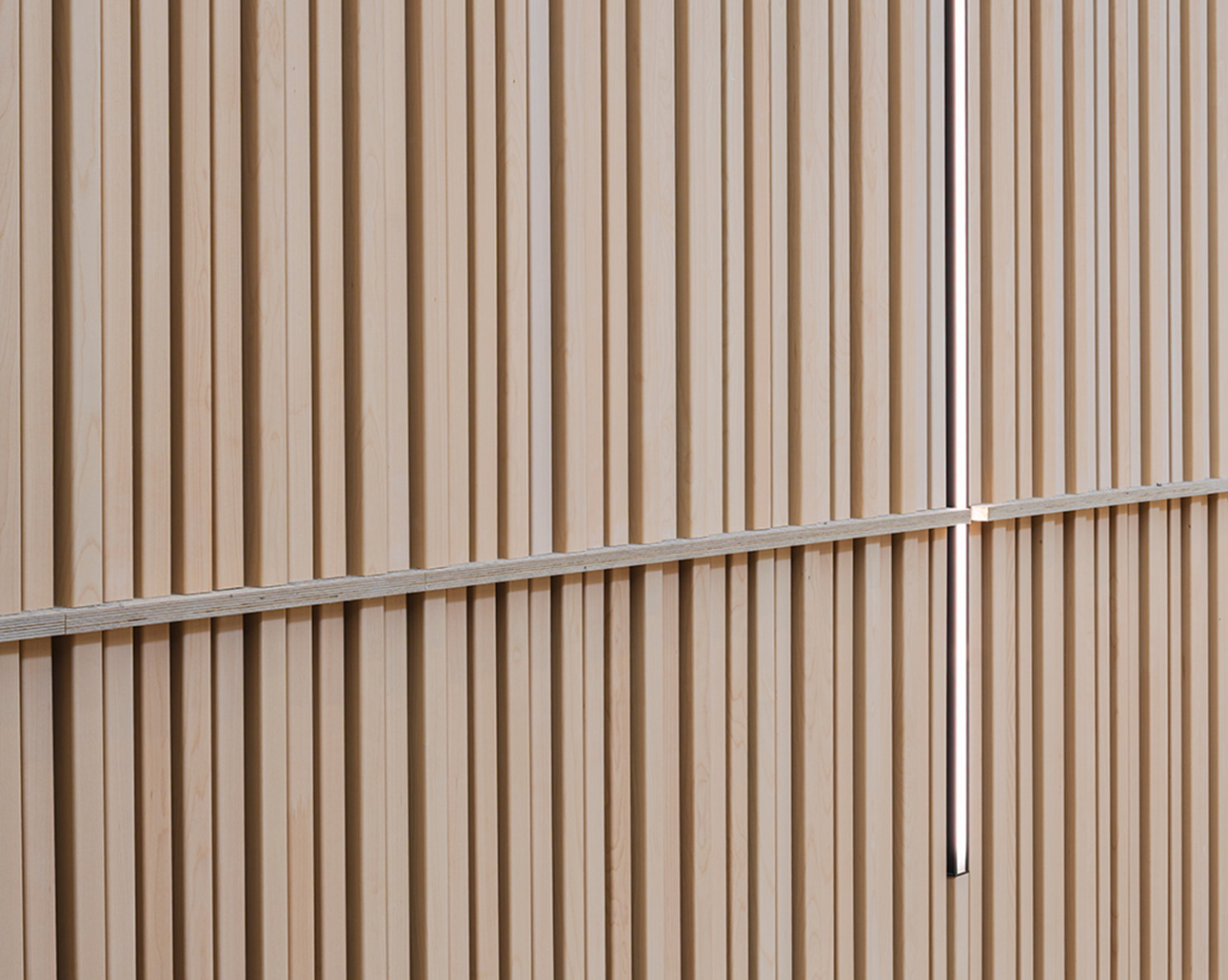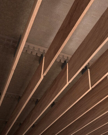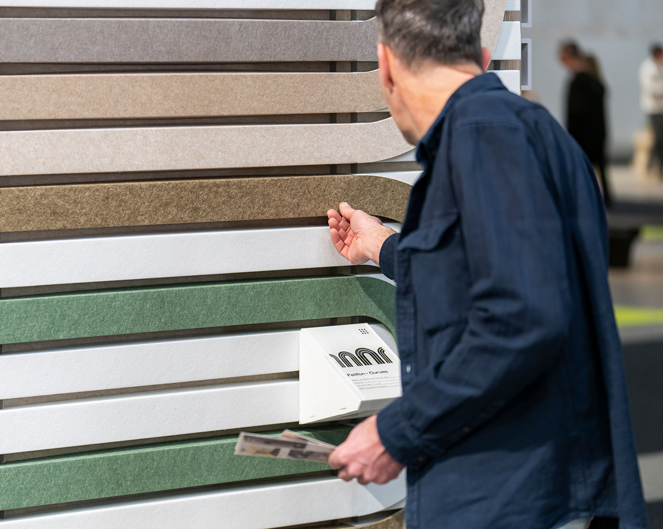 The acoustic specification is a system decision, not just a product choice. For all Gustafs acoustic products, the complete installation determines the acoustic result – not just the product itself. The same material can deliver absorption class D installed directly against the surface, or class A when combined with the right construction depth and insulation behind it.