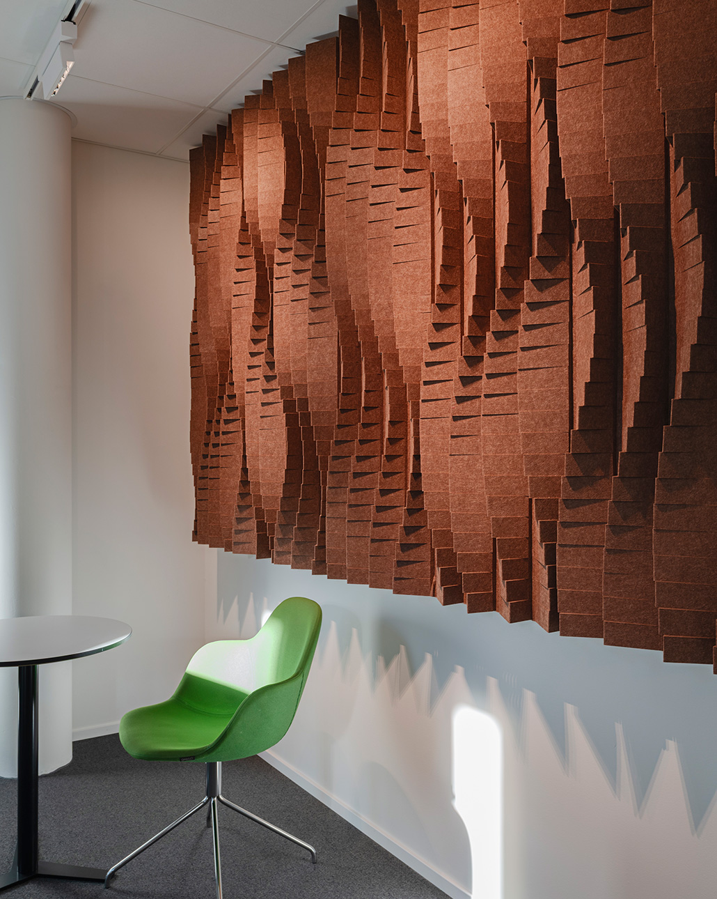 Feltfon© DNA – Ljuddämpande konstverk, inspirerade av origami, lägger till en tredje dimension till din ljudabsorberande installation och med sina fantastiska 3D-formade vågmönster förbättrar den akustiken i rummet. Capax Quick-Up-systemet säkerställer stabila och enkla installationer för både väggar och tak. Med Gustafs Acoustex© är Feltfon DNA robust och vattenresistent för alla typer av offentliga interiörer. Berika designen med fyllningslister i trä. Feltfon© DNA har brandklass B-s1,d0 utan behov av impregnering. Placera enkelt varje DNA ribba som du vill och skapa egna vågmönster.