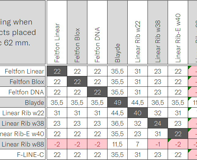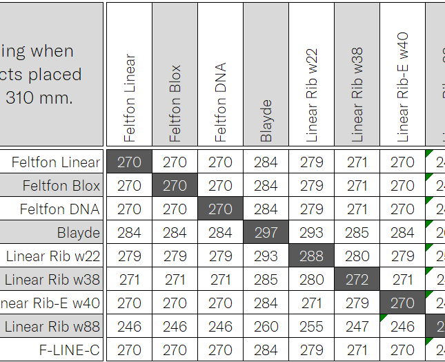 Mixa och kombinera bredder, djup och material. MIX-systemet gör det möjligt att förena den mjuka, textila känslan hos Feltfon med eleganta, naturliga träytor i våra fanérklädda produkter. Med Mix systemet kan du lätt skapa linjära mönster med tydlig karaktär och visuell variation.