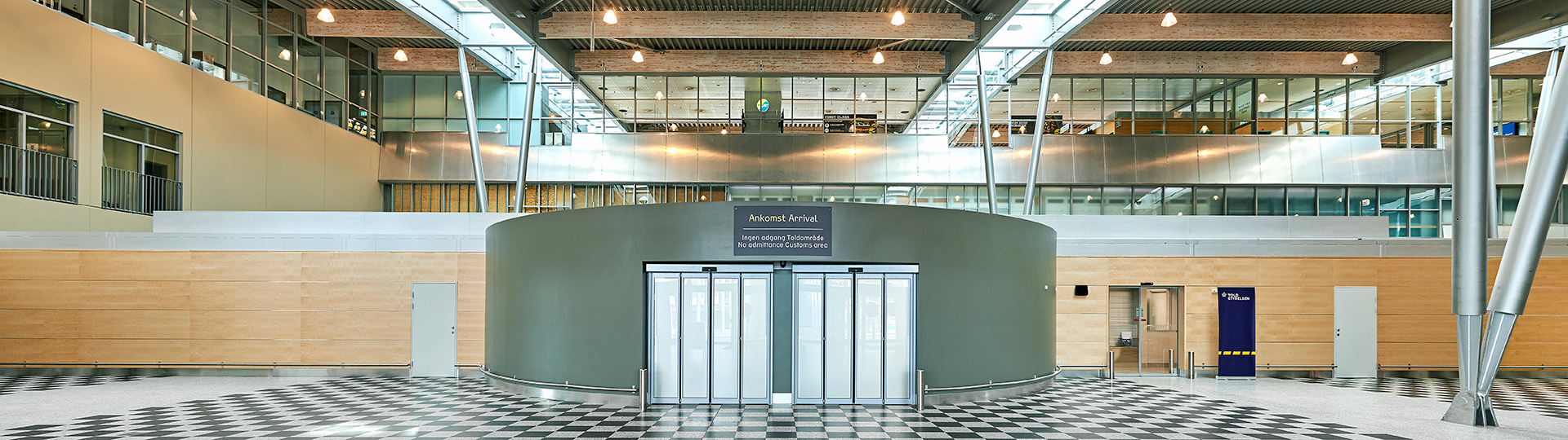 Flygplatsen, som öppnades 1964, har genomgått omfattande renoveringar och utbyggnader för att moderniseras och anpassas till framtida behov. Som en del av upprustningen har Gustafs och vår danska distributör JJI levererat väggpaneler i svarvad björkfanér till flygplatsens tullområde.
